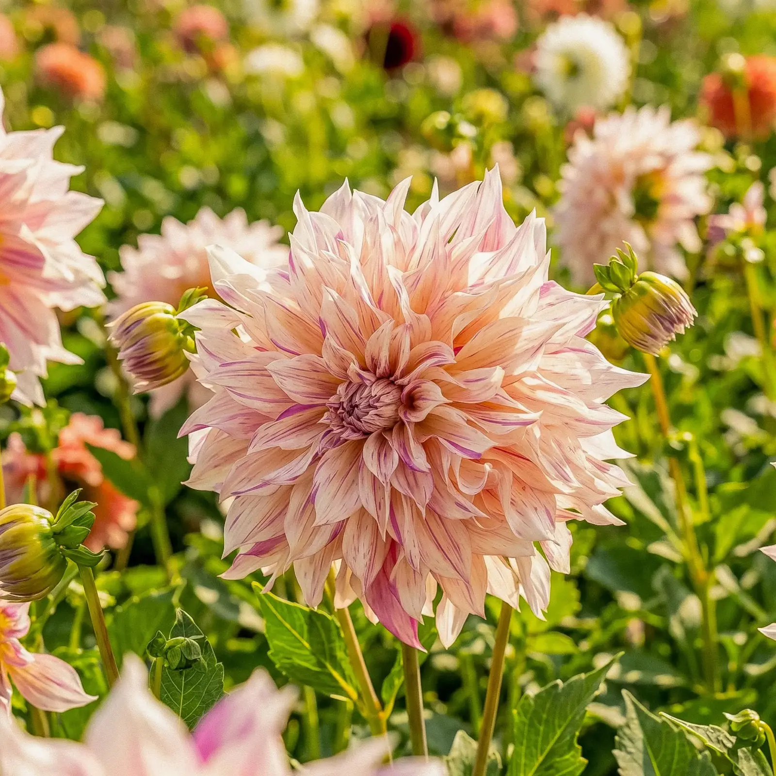 Przypomina różowy zachód słońca nad ogrodem. Różowo-łososiowe, kuliste kwiaty układają się w miękkie chmury koloru, które łagodnie toną w wieczornym świetle. To odmiana idealna na romantyczne rabaty przy tarasie i w ogrodach w stylu boho pełnych traw ozdobnych. Pięknie łączy się z bielą, różami, brzoskwinią i szałwiową zielenią.