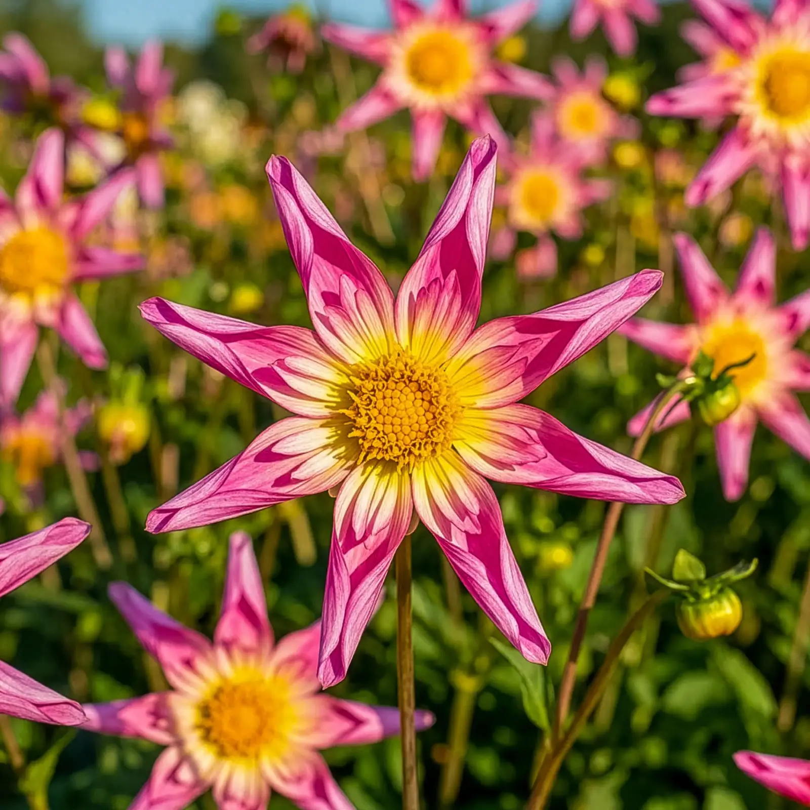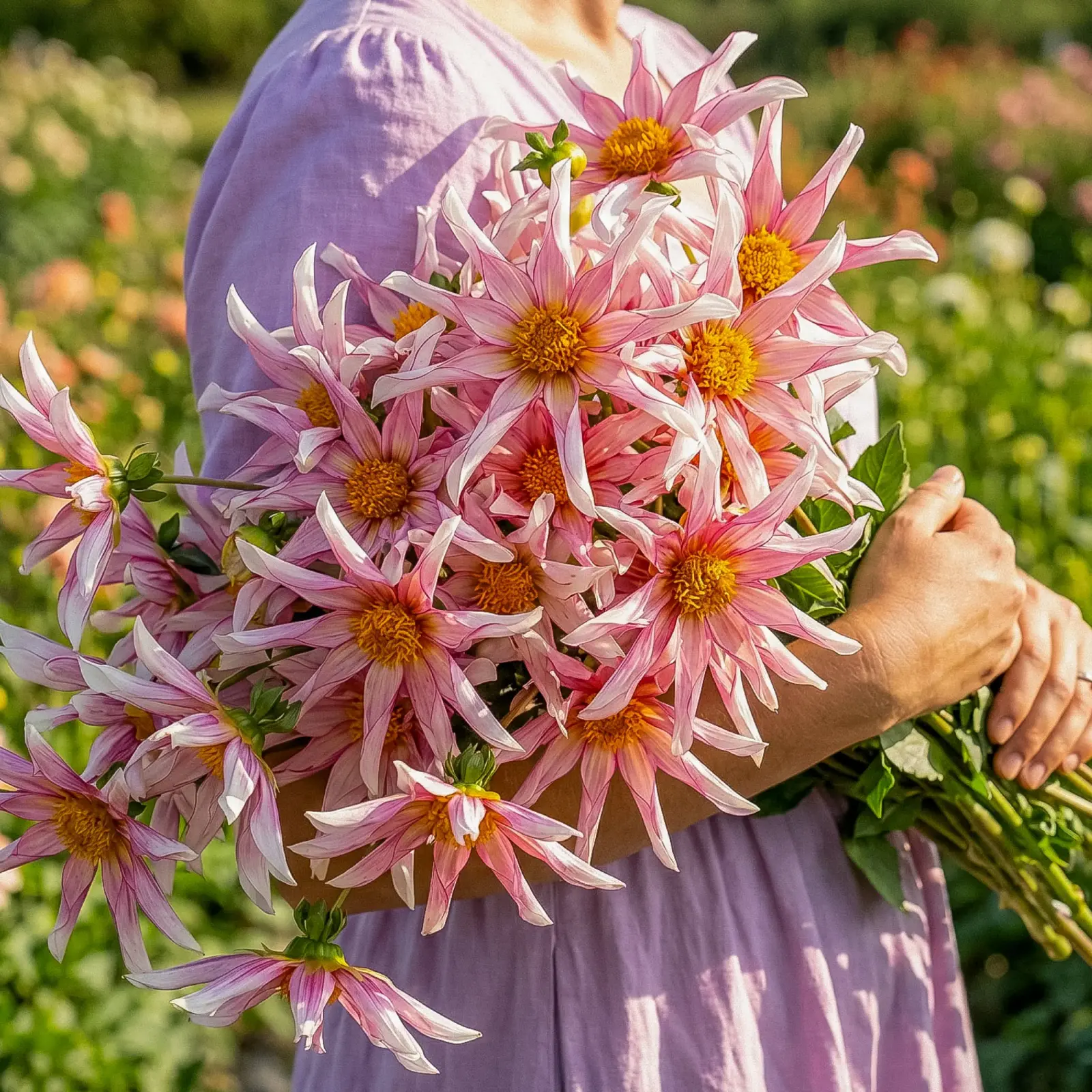 To odmiana o płatkach jak pióra muskane letnim wiatrem. Jej energetyczna forma i delikatnie postrzępione brzegi tworzą wrażenie ruchu, jakby kwiat tańczył w rytmie ciepłego sierpniowego powiewu. Doskonała do nowoczesnych, lekko dzikich kompozycji ogrodowych. W bukietach dodaje lekkości i artystycznej swobody.