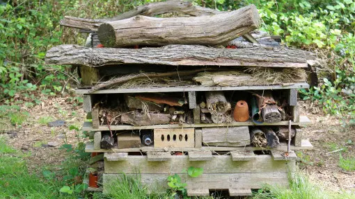 Wydziel miejsce na stertę gałęzi, kawałki drewna, kamienie, fragmenty kory. To dom dla pożytecznych owadów i miejsce zimowania wielu gatunków. Nie musi wyglądać idealnie – wystarczy, że jest stabilne i nie jest co tydzień przenoszone. -