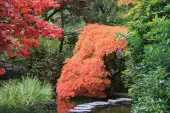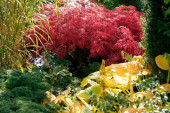 Klon palmowy (Acer palmatum) to najmniejszy z klonów, dorasta do 5 m wysokości i szerokości. Jest wyjątkowo malowniczy o parasolowatej koronie. Liście jesienią przebarwiają się na jaskrawe kolory. Wymaga osłonięcia przed wiatrami i mrozami (szczególnie młode rośliny) oraz wilgotnego podłoża o lekko kwaśnym odczynie. Pięknie prezentuje się jako soliter w pobliżu wody.