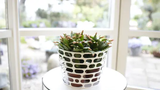 Niepotrzebny przedmiot, taki jak klatka dla ptaków, stara walizka lub metalowa miednica może zastąpić osłonkę na donicę.