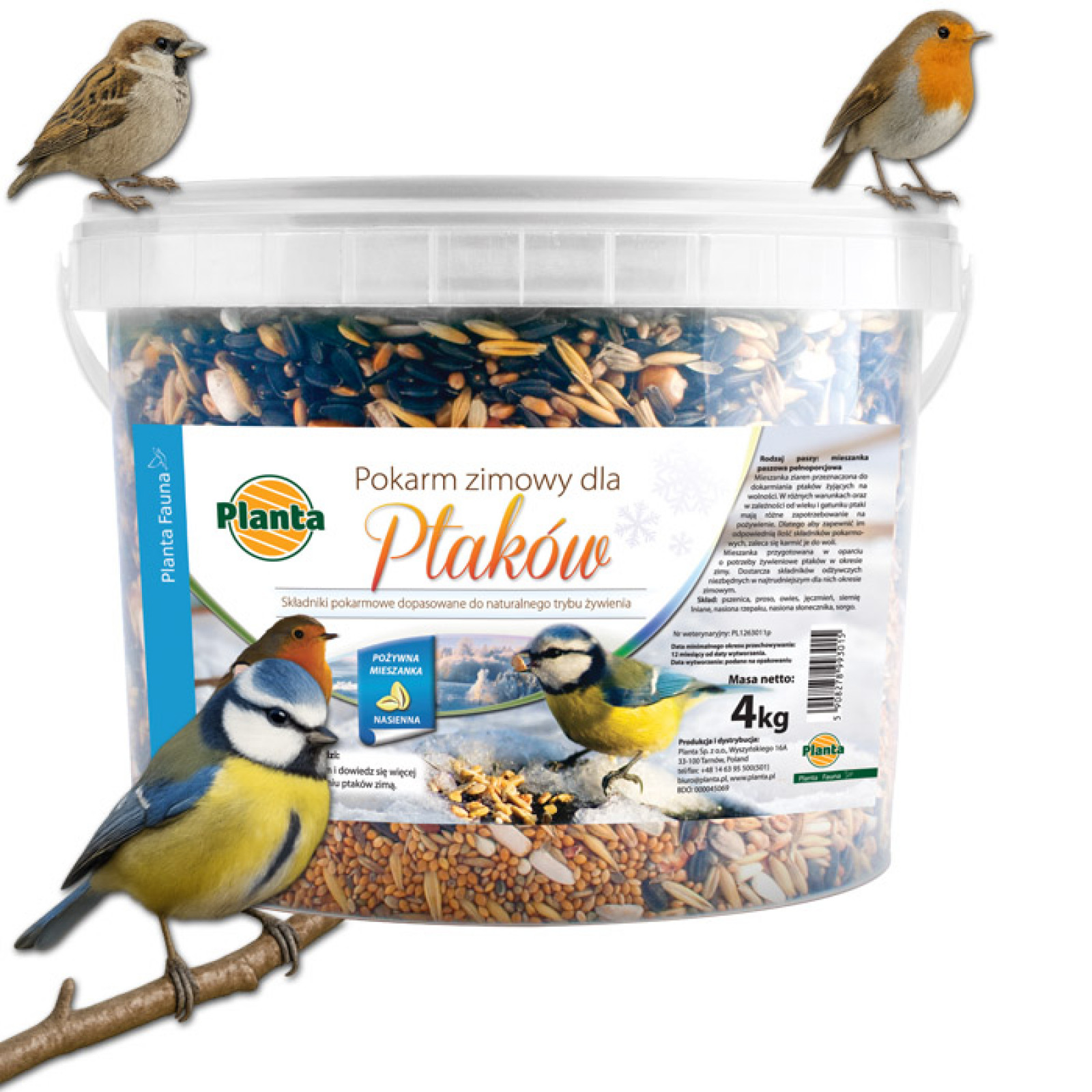 Ziarna zbóż, proso, owies – dla wróbli, mazurków i gołębi.