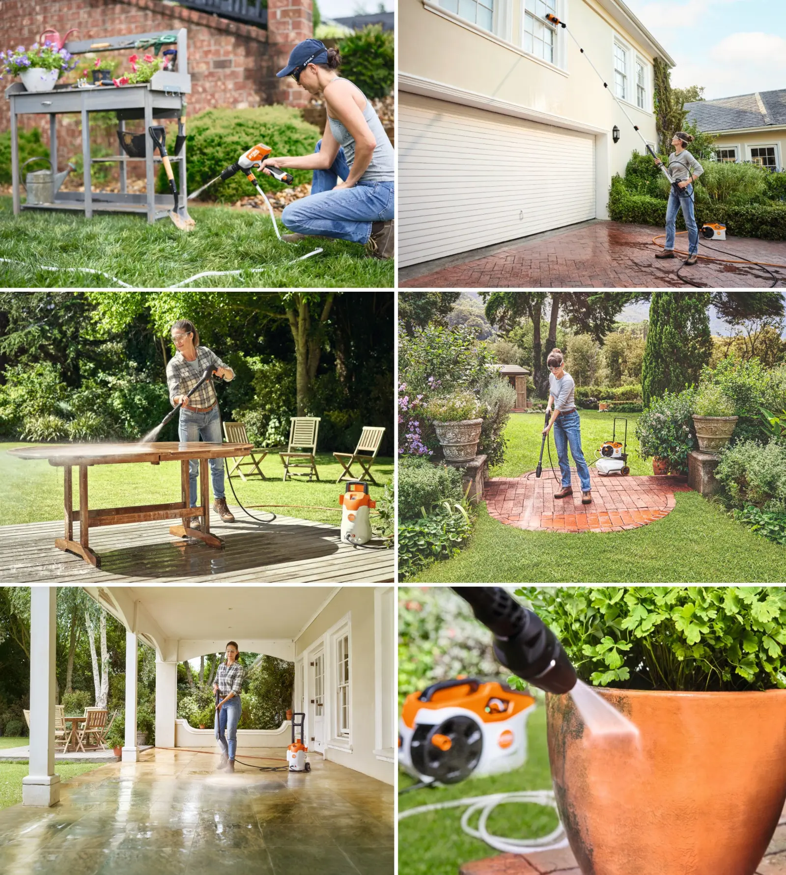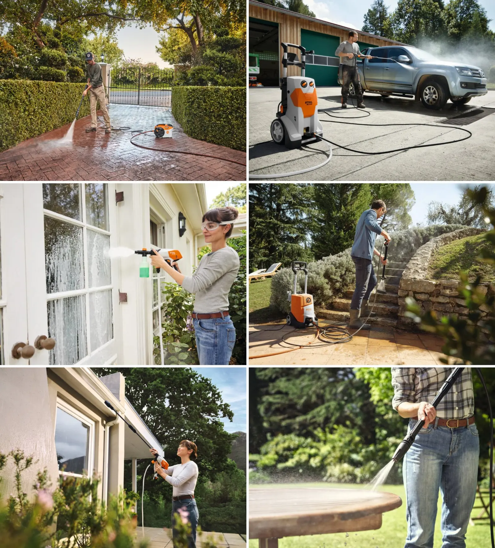 Myjki wysokociśnieniowe STIHL pozwalają dopasować siłę strumienia oraz akcesoria do mycia różnych powierzchni. Precyzyjna regulacja i odpowiednie dysze skutecznie usuwają brud, chronią czyszczoną powierzchnię przed uszkodzeniem, a jednocześnie skracają czas pracy.