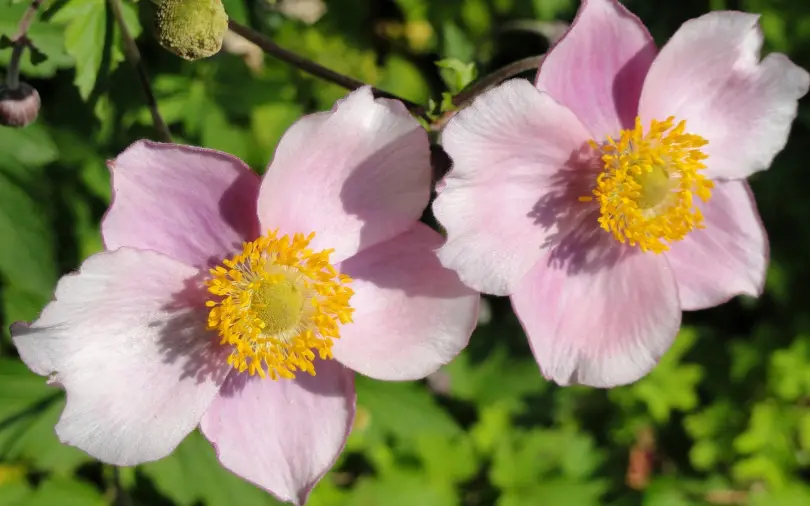 Wiosenny zawilec gajowy (po lewej) oraz kwitnący na przełomie lata i jesieni zawilec japoński (po prawej). |